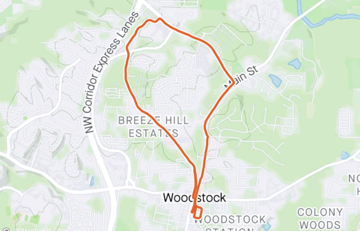 The Thang: Startex at Canyons in DTW, head North on Rope Mill to Woodstock Elementary, turn around and head South in Rope Mill and onto Main to Right on Hwy…