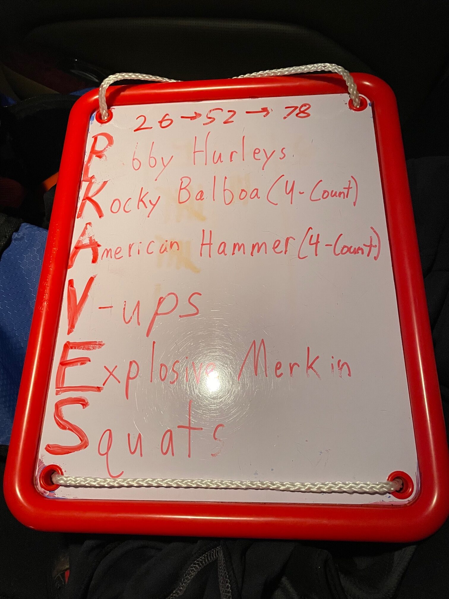 We met at the rock. We warmed up because it was cold. We did a partner pyramid workout where partner a ran and did 2 burpees, came back. Partner B…