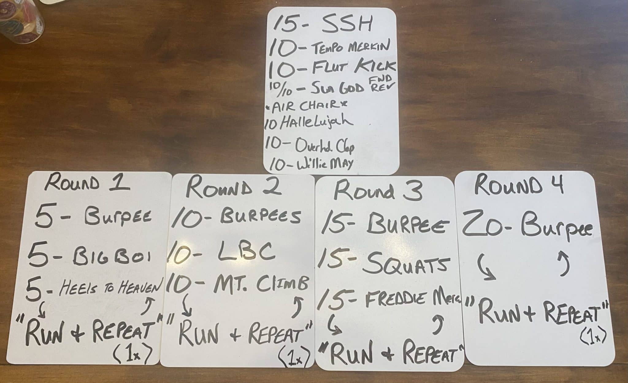 Warm-o-rama with, Weed pickers Inch worm Merkins SSH Imperial Walkers The thang was, splitting the group in 2 teams. Each team grabbing a deck of cards. Depending on the card…