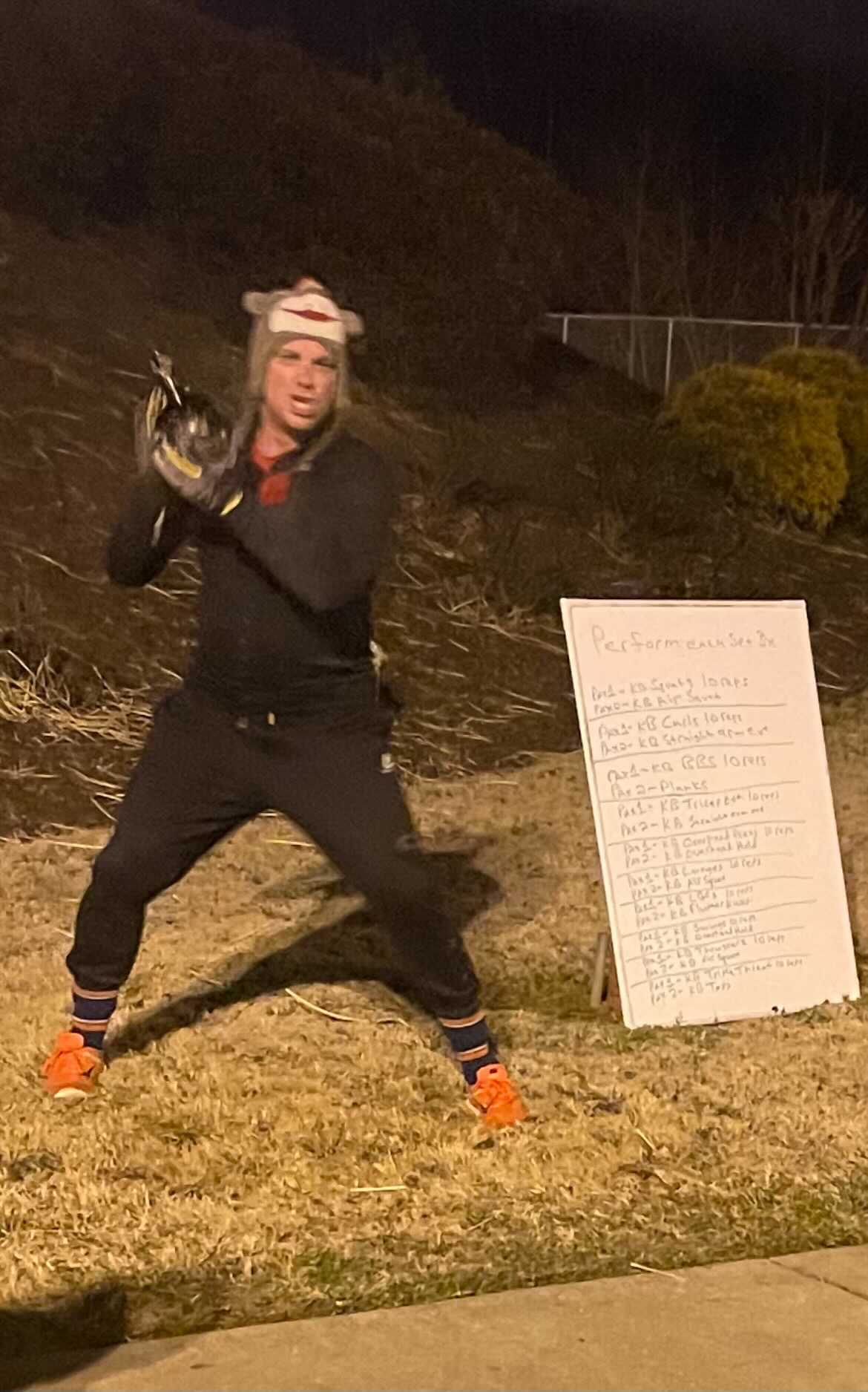 Long mosey lap around the parking lot, circle up for SSH, 5 Burpees OYO, Copper Head Squats, Sun Gods, Michael Phelps Grab your KBs and mosey over to the lightpole…