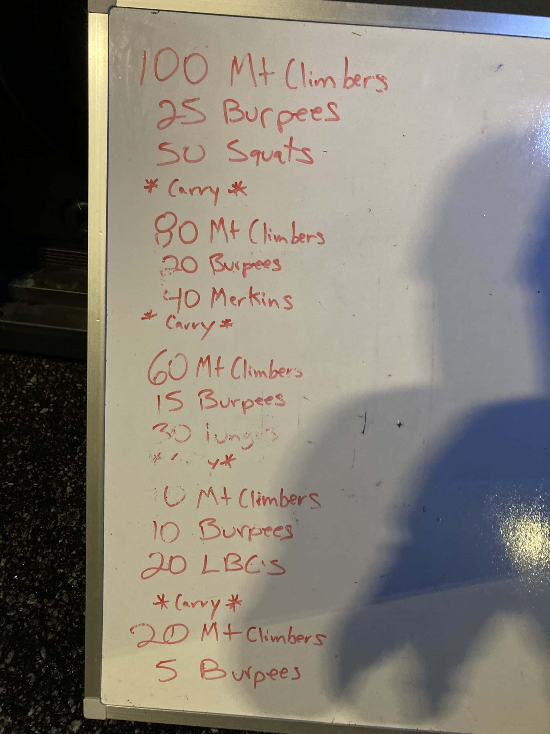 Warm-O-Rama Mosey around the flag circle (1/4 mile loop), Side Straddle Hops IC, Weed Pickers IC, Sun Gods OYO, Michael Phelps OYO The Thang Mosey back to the truck to…