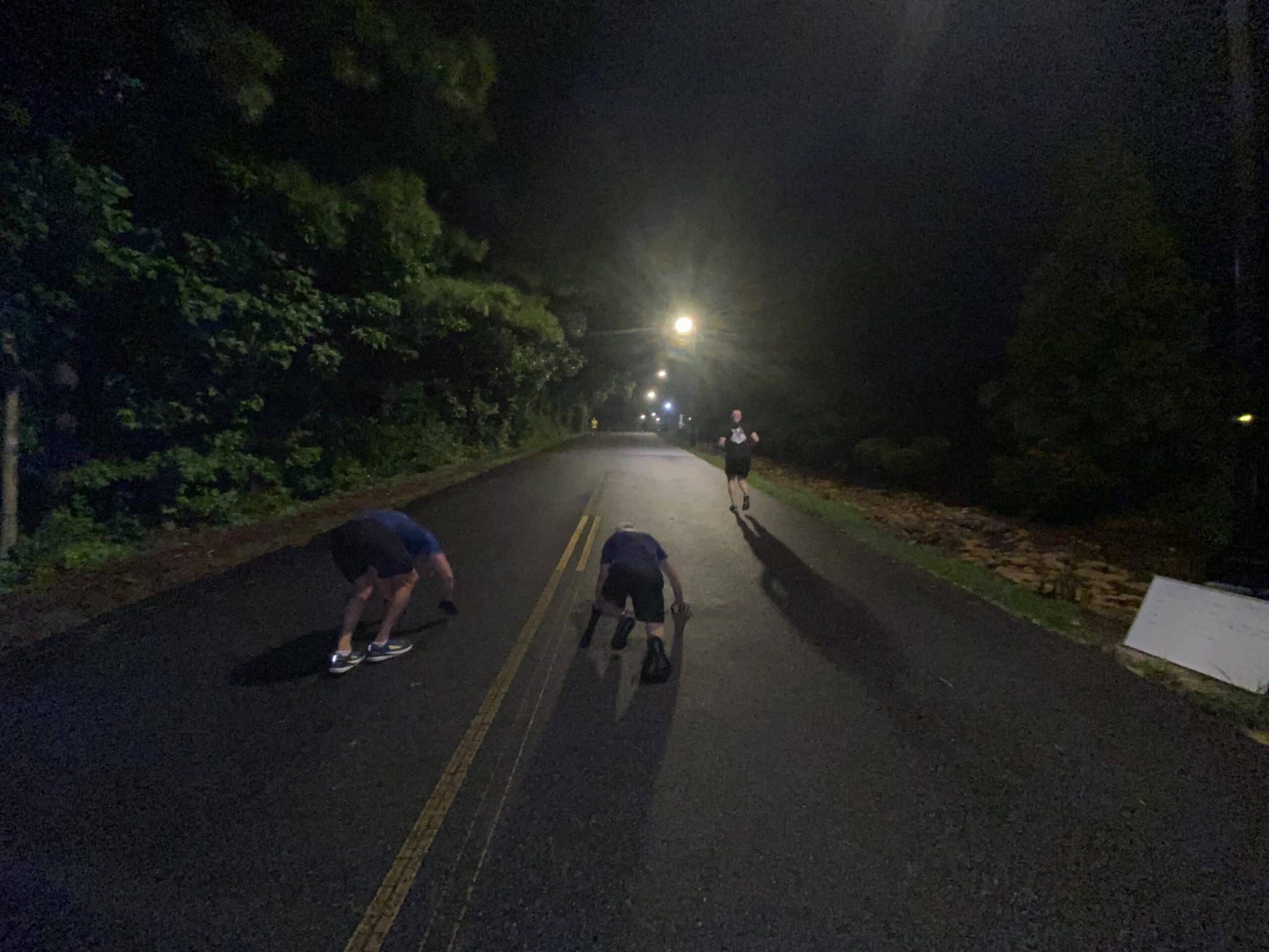 Quick mosey around the middle school, stopped at the back to do some 21’s which everyone got perfect accept the Q wich means I do burpees. The Thang: Run to…