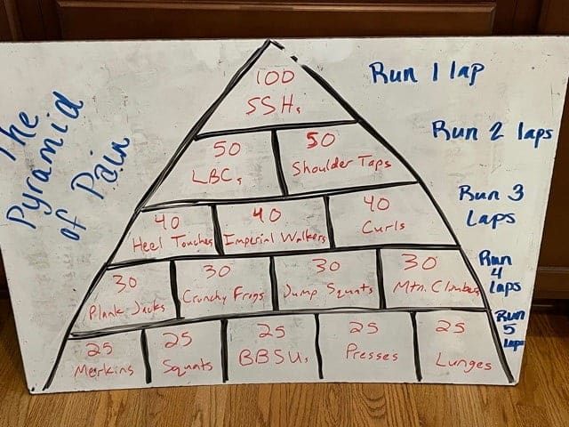 13 PAX including 4 different Site Q’s (WarTowne, Woodshed, CatBox, Apex) converged on WarTowne to take on the Murph Warm-up We don’t need no stinking warm-up. The Thang The Murph…